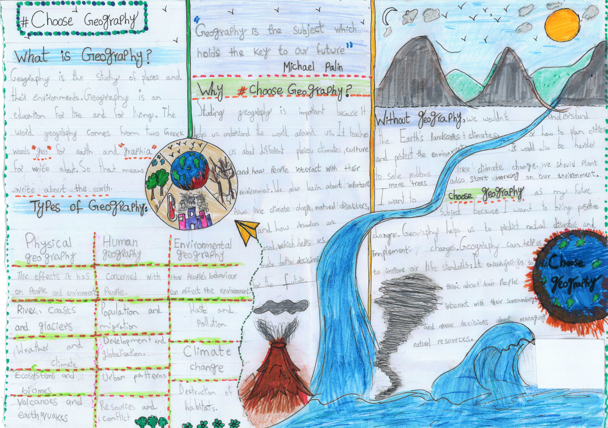 Labiqa attended an awards ceremony at the Royal Geographical Society on 19th November 2024. She produced a poster around the this year's theme of #choosegeography, which explored elements of human and physical geography as well as what life would be like without geography.